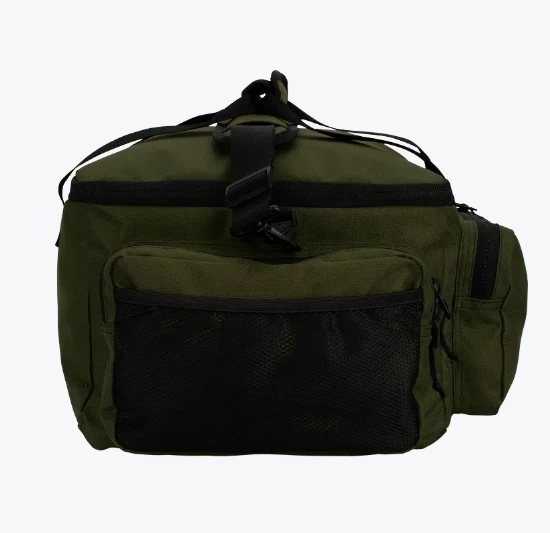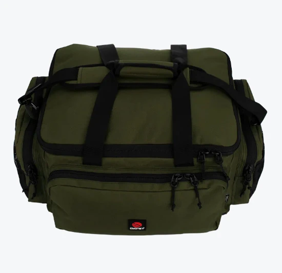 Ideaal voor het opbergen van een veelheid aan hengelsportartikelen en accessoires, groot hoofdvak met gaasvak met rits in het deksel, twee grote zijvakken met rits en extra buitenvakken van gaas en een volledig voorvak met rits