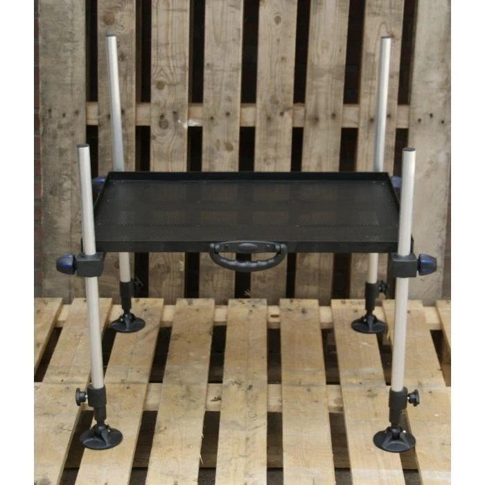 Met dit platform kan je alle kanten op aan de schuine waterkanten om toch stabiel recht te kunnen vissen.
