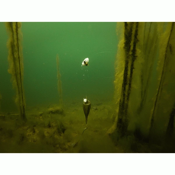 - Het unieke ontwerp van de afhouder zorgt dat je het lood kunt lossen (zonder de afhouder te verliezen) of het lood vast kunt laten zitten, afhankelijk van de hoeveelheid wier