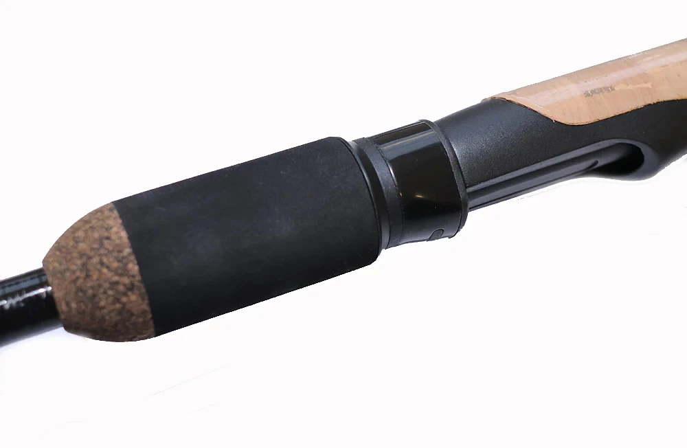 Het handvat combineert kurk en eva met een molenhouder maat 16 en een combinatie van dubbele poot en enkelpoot anti-warp geleide-ogen.
