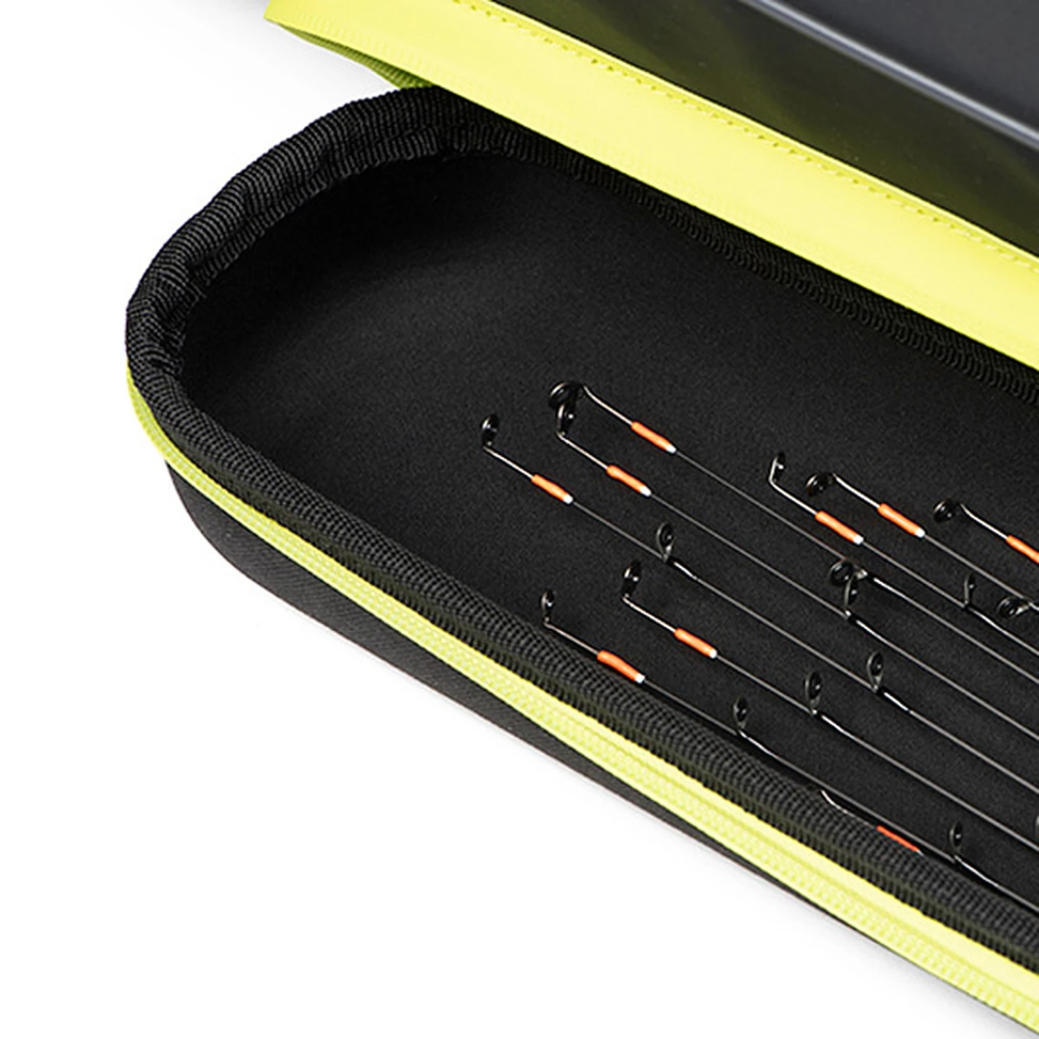 Case van stijf pe board biedt bescherming aan de hengels tijdens transport.
