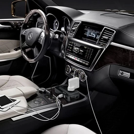 Naast twee stopcontacten beschikt de omvormer ook over vier usb aansluitingen (0~2,4A).