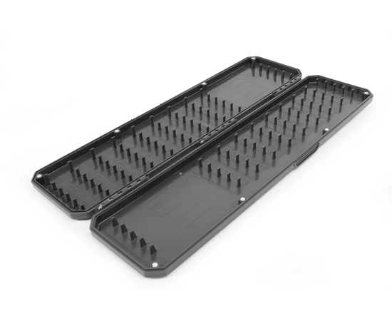 Een groot aantal sets interne pinnen in diverse lengtes maakt dat er onderlijnen in geplaatst kunnen worden voor zowel de vaste hengel als voor de werphengel, de ideale allround onderlijnendoos.