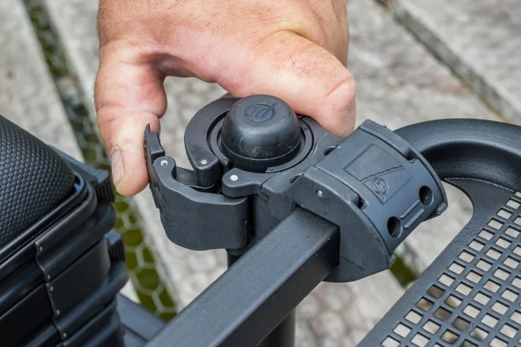 De grotere aastafel onderop is geconstrueerd van ventalite materiaal en kan meerdere aasdozen huisvesten, terwijl de kleinere bovenste aastafel is geconstrueerd van stevig aluminium; hierdoor is deze geschikt voor extra opslagruimte voor aas en materiaal, maar ze fungeert ook als bescherming tegen de regen voor de onderste aastafel mocht het tijdens een sessie gaan regenen.