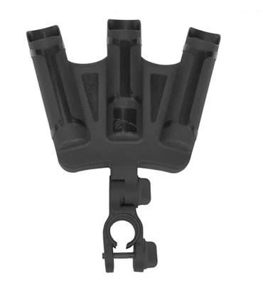 De triple rod support kan geroteerd worden in verschillende posities voor optimale bevestiging.