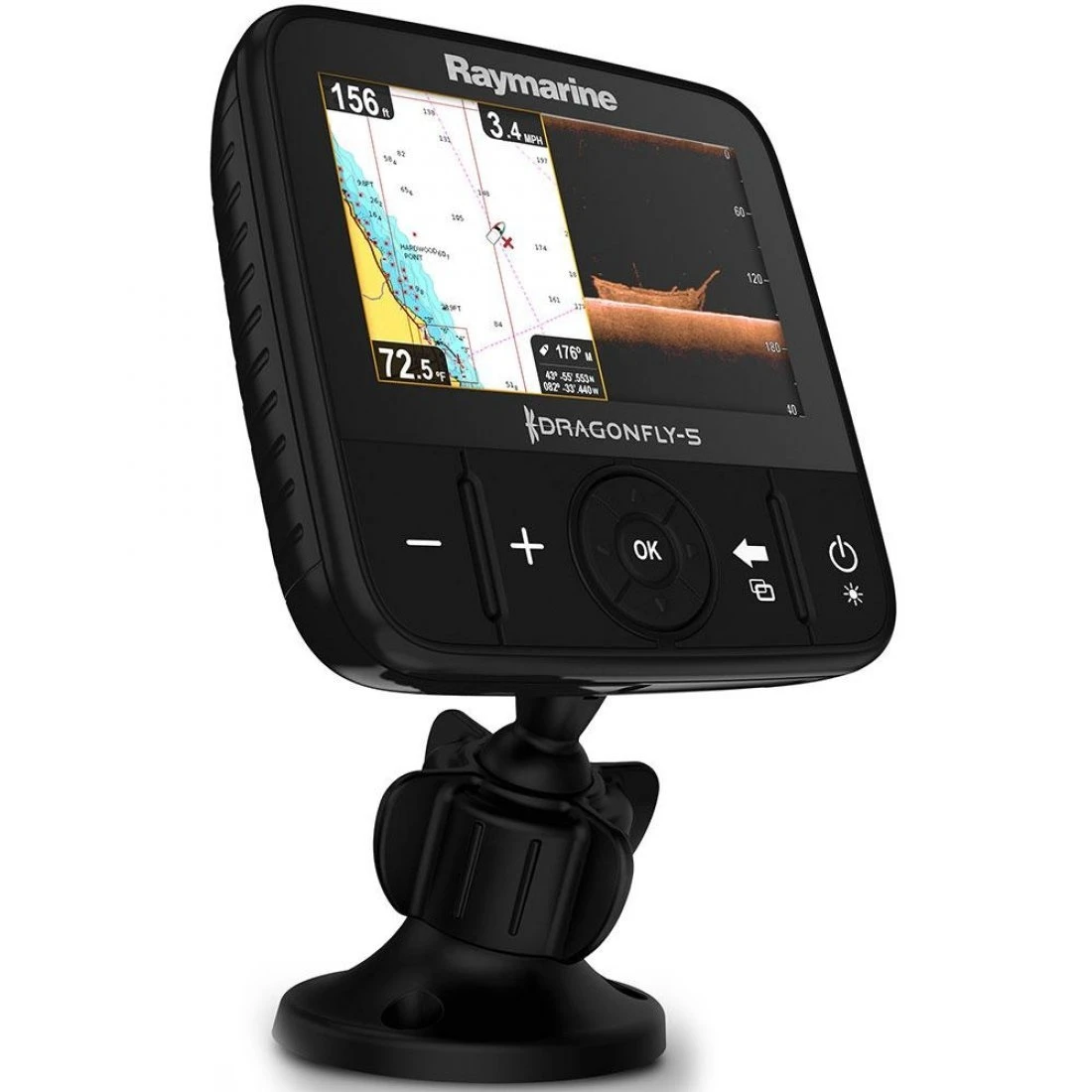 Deze vernieuwde raymarine dragonfly 5pro *2023 is nog helderder qua beeld dan zijn voorganger en beschikt over singlechannel chirp sonartechnologie, dit zorgt voor een fotoachtig sonar beeld op het heldere 5″ all-weather display weergegeven wordt en de traditionele kleurensonar, daarnaast heeft hij een interne gps.