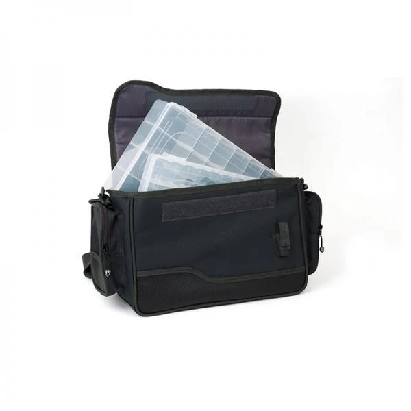 Met twee grote tackle boxen in het hoofdcompartiment biedt de grote schoudertas opties voor het opbergen van grotere, maar ook meerdere aantallen kunstaasjes – alles in een gemakkelijk toegankelijk schoudertasontwerp.