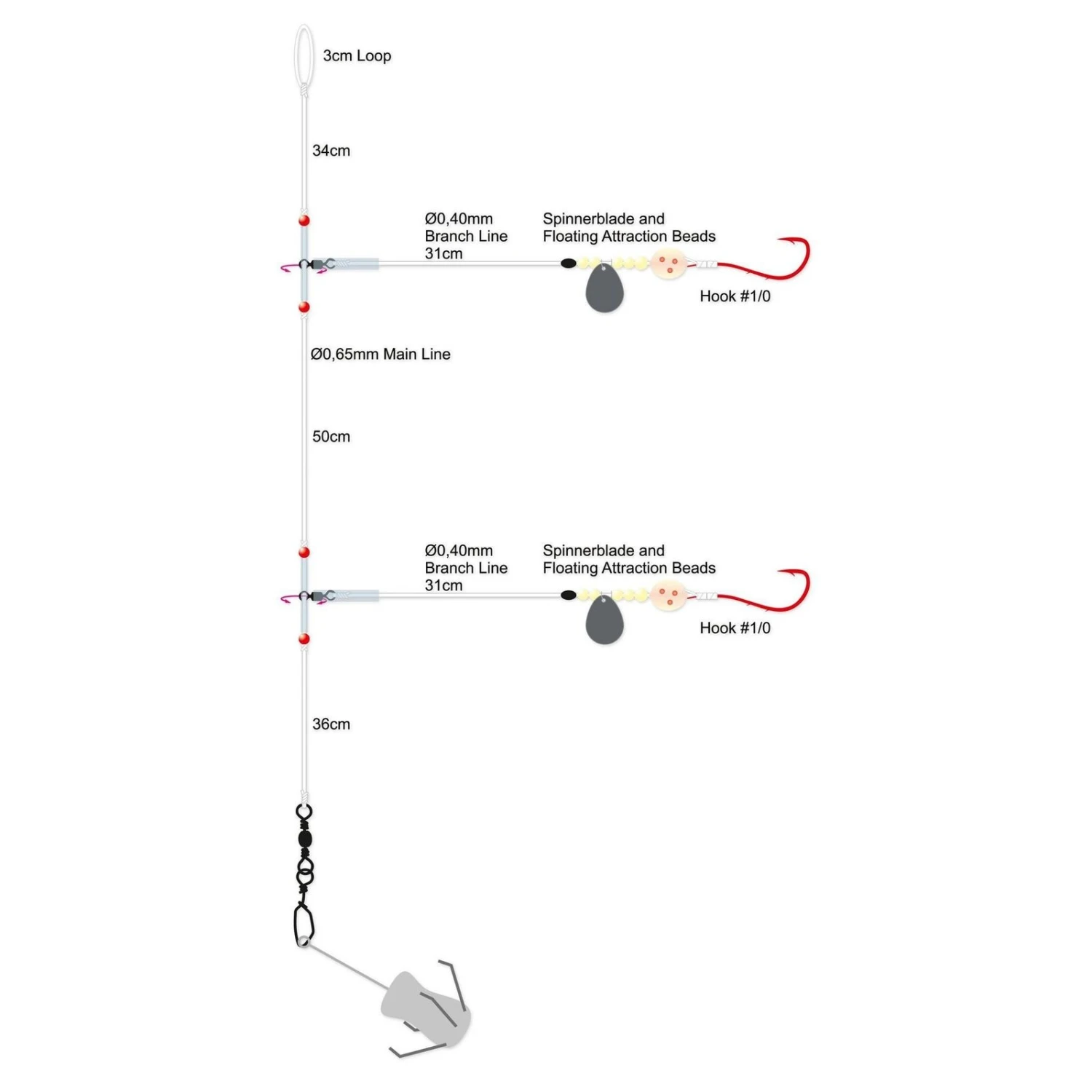 De 2-haaks bot & aal paternoster van spro een onderlijn voor de platvisserij.